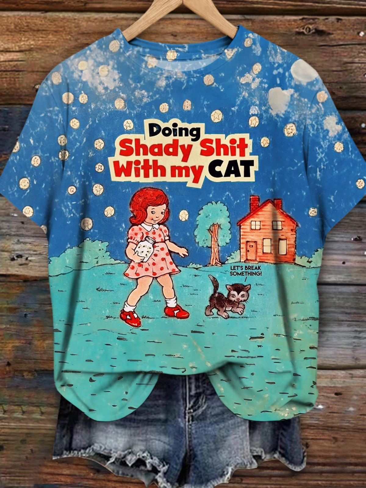 Doing Shady Shit With My Cat Girls Vintage Print T-Shirt