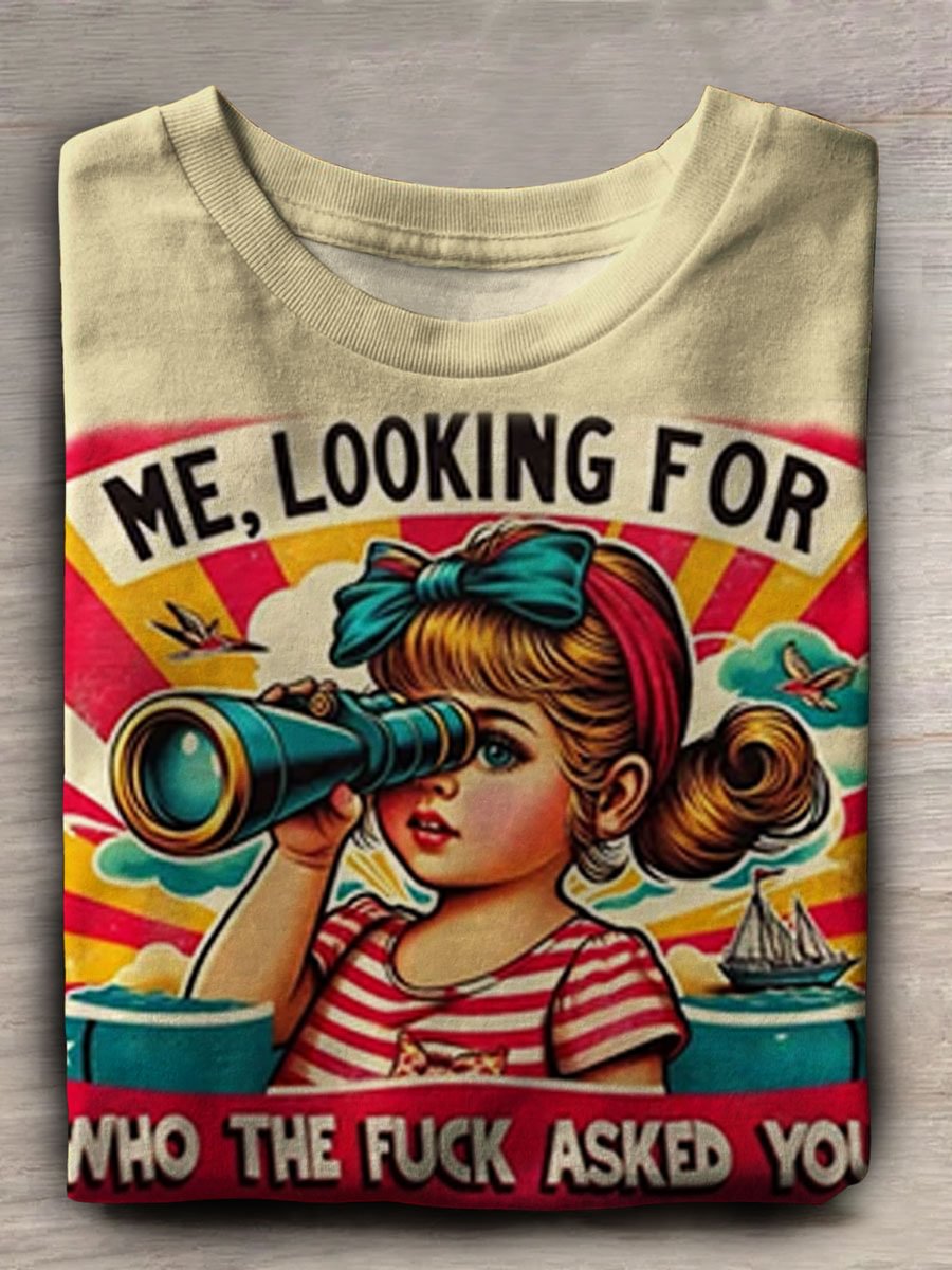 Women's Vintage Print Casaul Crew Neck T-shirt